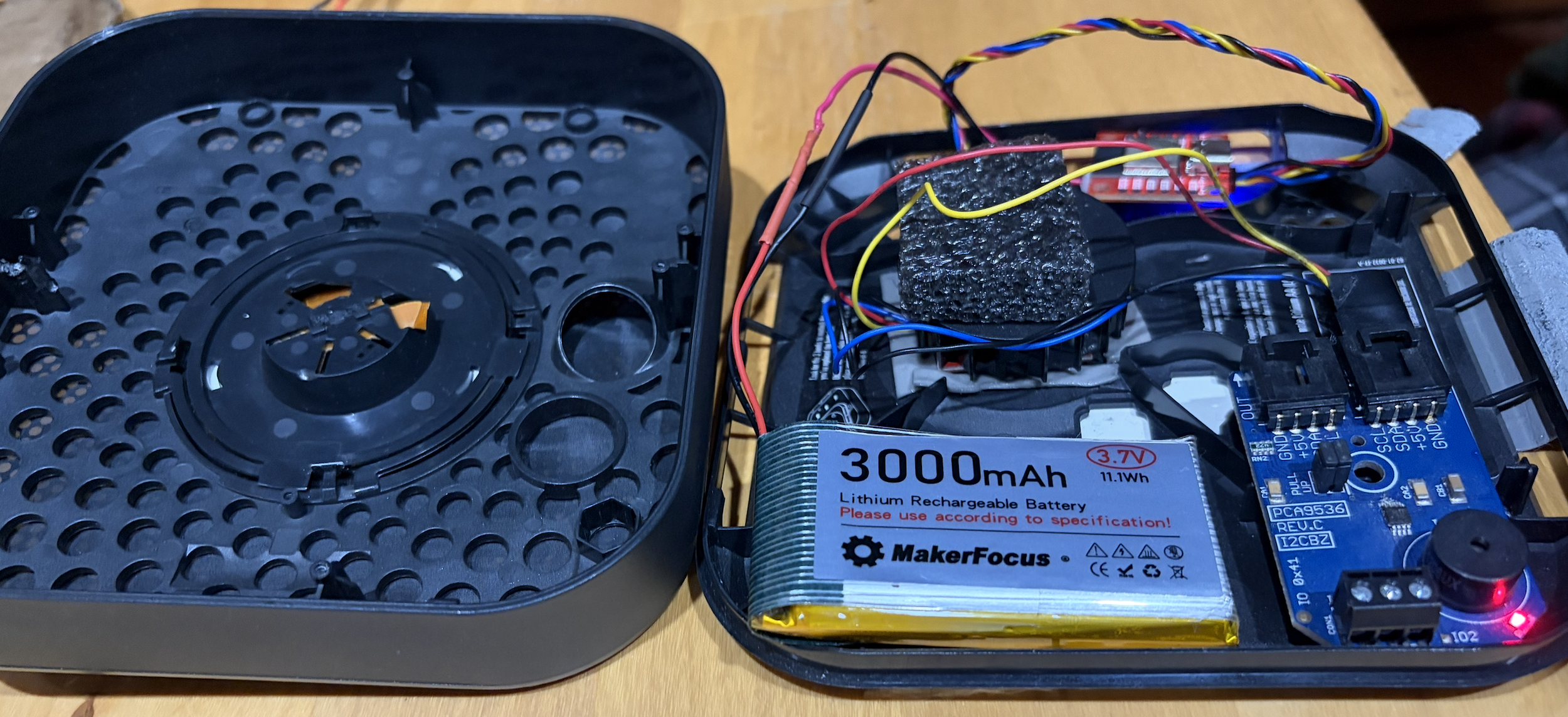 Using an Arduino and particle sensor I’ve built a smoke detector and packed it into the case from an expired Nest thermostat. The microcontroller is a Sparkfun ESP32 C powered by a 3000mAh LiPo battery. The particle sensor is a Sparkfun MAX30101. When smoke is detected it sounds an alarm through a connecteverything.com buzzer and sends a message to a local MQTT server. Software running on my Linux server listens to that queue. When it hears a message from the smoke detector it sends me an email and a text message.